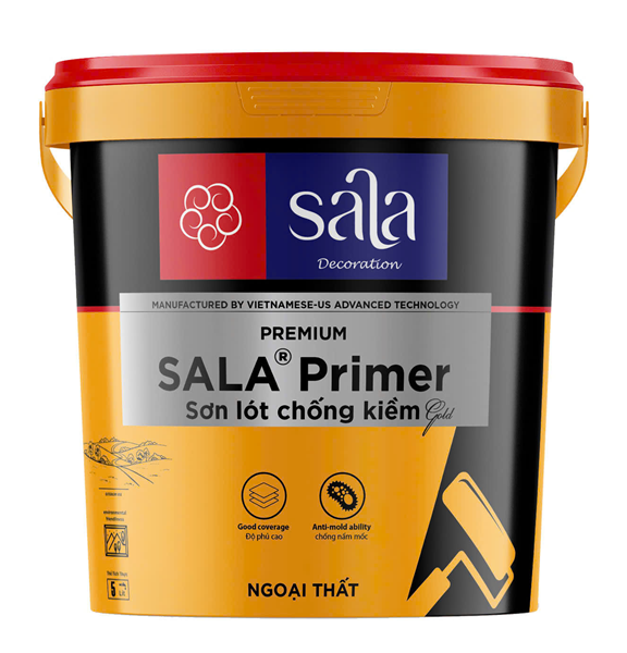 o Bước 2: Thi công 1 lớp sơn lót kháng kiềm Sala Primer Gold. Để lớp sơn lót khô từ 6 - 8 giờ mới phủ các lớp sơn trang trí khác .